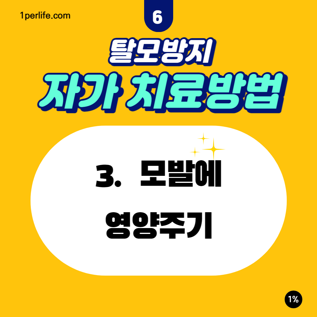 깨끗하게 샴푸하고 말려주었다면 이제 영양을 주어야 할 차례이다. 두피보다는 모발 끝에 헤어팩 등을 해주는 것이 좋으며, 두피 쪽은 항시 깨끗하게 유지되도록 해주는 것이 좋다. 또한 수분을 많이 섭취해 주는 것이 모발에도 좋다.
